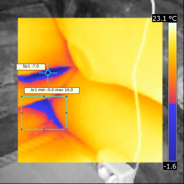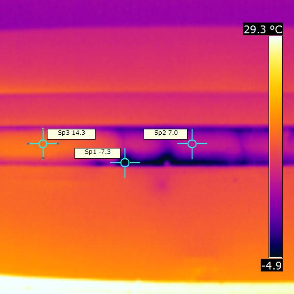 Polyuretaani eristys on jäänyt vajaaksi. Alla lämpökuva.